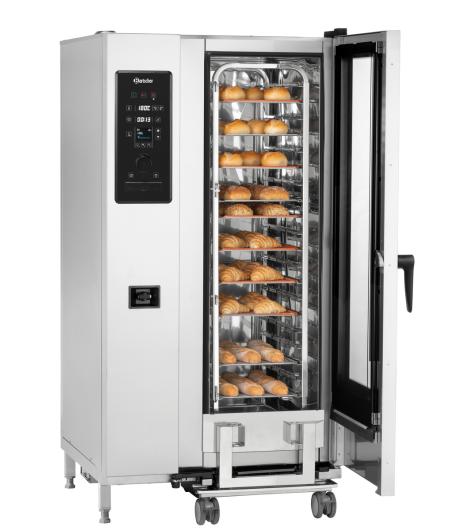 Maximales Garen auf minimalem Raum: Der Kombidämpfer mit Hordenwagen für 20 GN-Behälter 1/1 GN ist prädestiniert für die Produktion großer Mengen – Der perfekte Partner bei der Speisenzubereitung für die Gemeinschaftsverpflegung und in Großküchen. Die Vollausstattung überzeugt: 4-Punkt-Kerntemperaturfühler, Delta-T-Garen, Niedertemperaturgaren und Reinigungssystem.