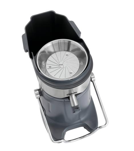 Für eine professionelle und ergiebige Saftproduktion. Der leistungsstarke Motor ermöglicht im Zusammenspiel mit dem großen Einfüllschacht und Tresterbehälter ein problemloses Entsaften ganzer Früchte oder auch Gemüse.