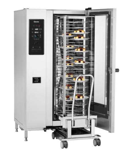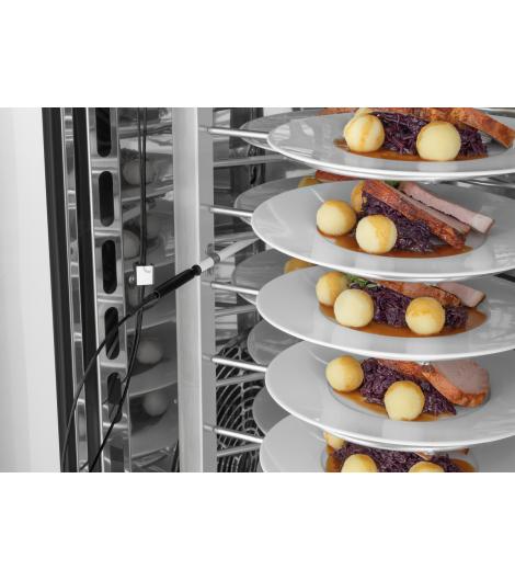 Große Mengen in kurzer Zeit: Mit dem Tellerhordenwagen können bis zu 50 fertig angerichtete Teller im Kombidämpfer Gigasteam 20110DRS zeitgleich regeneriert und anschließend herausgegeben werden. Dies spart Zeit – sowohl im Küchenbereich als auch bei der Speisenausgabe im Servicebereich.