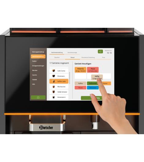 Dieser Kaffeevollautomat bietet eine Getränkevielfalt der Spitzenklasse – von Kaffee über Tee bis zu Kakao und weiteren Pulverspezialitäten. Zwei Toppingbehälter eröffnen kreative Möglichkeiten für individuelle Genussmomente, passend für jeden Geschmack. Ausgelegt für bis zu 120 Tassen pro Tag ist er die ideale Lösung für den Selbstbedienungsbereich oder die Getränkeausgabe bei hoher Durchlaufzahl.