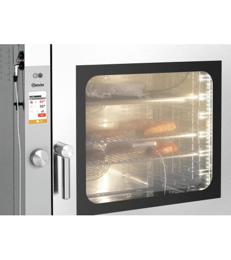 Raucharomen verleihen Fleisch, Fisch und auch Gemüse einen ganz besonderen Geschmack. Diese besondere Note kann mit der Smoker-Box schon während des Garvorgangs an die Speisen gegeben werden. Die einfache Handhabung spricht für sich: Die Smoker-Box wird an das Netzteil angeschlossen und der Räuchervorgang im Kombidämpfer kann direkt starten.