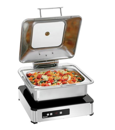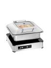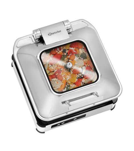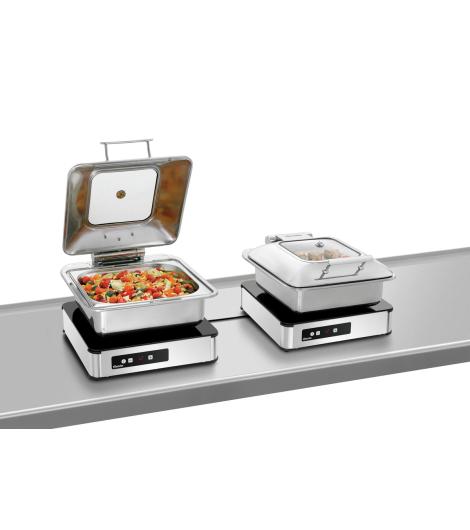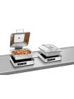 Das Design dieser Warmhalteplatte lässt jedes Buffet ansprechender wirken. Die praktische Lösung 4 Geräte mit dem optional erhältlichen Kabel in einem Stromkreis zu verbinden und zu schalten sorgt zusätzlich für einen einheitlichen, hochwertigen Look bei der Speisenausgabe.