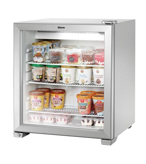 Tiefkühlschrank mit 90 Litern Fassungsvermögen, Glastür und separat schaltbarer Scheibenheizung. Ideal für eine perfekte Präsentation von Tiefkühlwaren wie Speiseeis in Kiosken, Kinos, Tankstellen, Bistros oder Bars.