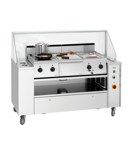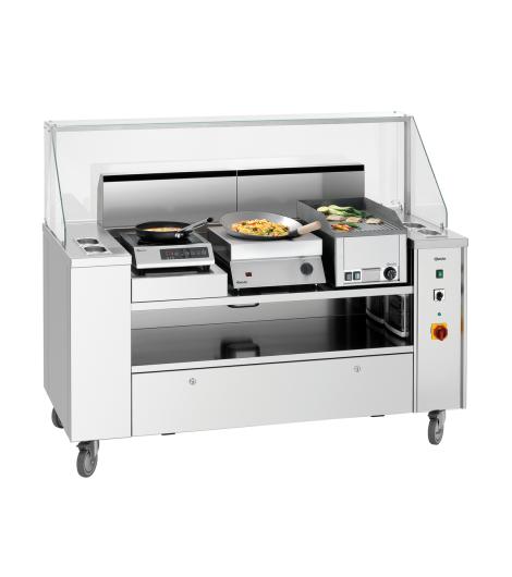 Wie aus einem Guss – die mobile Kochlösung für Front-Cooking, Catering und Event. Flexibel bestückbar mit den passenden Auftischgeräten und entsprechendem Zubehör ermöglicht sie einen flexiblen Einsatz. Die Geräte können bei unterschiedlichen Anforderungen einfach und beliebig gewechselt werden.