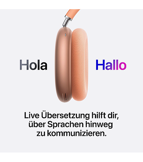 Mit Live Übersetzung war es noch nie einfacher, sich mit Menschen zu unterhalten, die eine andere Sprache sprechen. Halte einfach die Taste für den Hörmodus gedrückt, um die Sprache der Person, mit der du dich unterhältst, mit den AirPods Max 2 in deine bevorzugte Sprache übersetzen zu lassen.