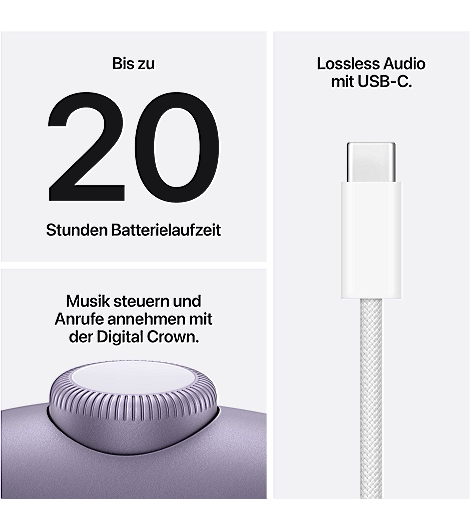 Mit der Power des H2 Chip liefern die AirPods Max 2 einen noch beeindruckenderen detailreichen Hi‑Fi Sound. Ein neuer Verstärker mit hohem Dynamikbereich sorgt für noch mehr Dynamikreserve, die der speziell entwickelte Treiber für sattere Bässe, natürlichere Vocals und präzisere Lokalisierung von Instrumenten nutzt – und das über ein breiteres Klangbild hinweg.