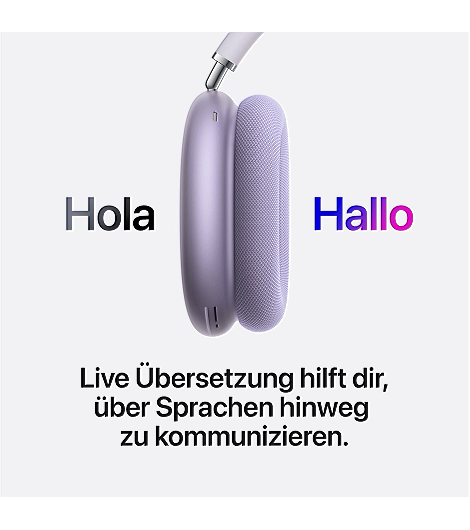 Mit Live Übersetzung war es noch nie einfacher, sich mit Menschen zu unterhalten, die eine andere Sprache sprechen. Halte einfach die Taste für den Hörmodus gedrückt, um die Sprache der Person, mit der du dich unterhältst, mit den AirPods Max 2 in deine bevorzugte Sprache übersetzen zu lassen.
