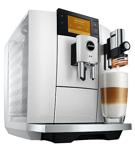 Die E8 strahl mit Stil und positioniert sich dank ihrer 27-cm-Breite auch in kleineren Küchen mit eindrucksvoller Wirkung; im Design und Kaffee-Erlebnis.