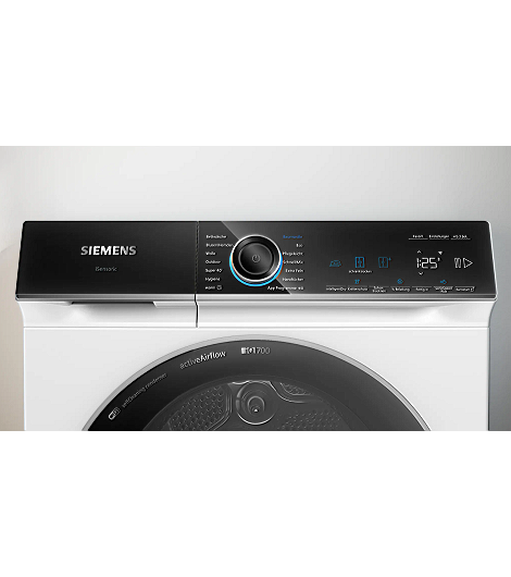 Der Wärmepumpentrockner WR47B2C40 von SIEMENS brilliert durch eine überzeugende Ausstattung. Optimale Werte im Hinblick auf den Energiebedarf liefert dieser Wärmepumpentrockner mit der Energieeffizienzklasse A (Skala: A bis G). Der Wärmepumpentrockner eignet sich vor allem für Haushalte ab 5 Personen, da dieser 9 kg Fassungsvermögen hat. Kondensationseffizienzklasse A ist die beste, die vergeben wird, denn durch sie erhöht sich die Luftfeuchtigkeit in der Umgebung des Trockners kaum und minimiert dadurch Schimmelbildung. Über die Startzeitvorwahl lässt sich einstellen, wann der WR47B2C40 Wärmepumpentrockner mit dem Trocknen anfängt. Das ist insbesondere dann hilfreich, wenn die Wäsche fertig sein soll, sobald man nach Hause kommt. Die übrige Programmdauer wird auf der Restlaufanzeige dargestellt. So erkennt man immer, wie lange der Wärmepumpentrockner noch für das Trocknen benötigt. Eine Anzeige verrät, wann Der Wasserbehälter entleert und der Filter gereinigt werden sollen. Dadurch hat man die relevanten Informationen bezüglich der Reinigung im Blick. Die beleuchtete Wäschetrommel aus Edelstahl steht für Qualität und einen langen Haushaltseinsatz. Mit Maßen von 59,8 cm x 84,2 cm x 62,7 cm (BxHxT) macht der Wärmepumpentrockner eine ausgezeichnete Figur.