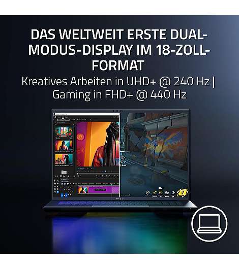 18 Zoll (45,72 cm), UHD+ 240 Hz (3840x2400) | FHD+ 440 Hz (1920x1200), Dual-Modus-IPS |