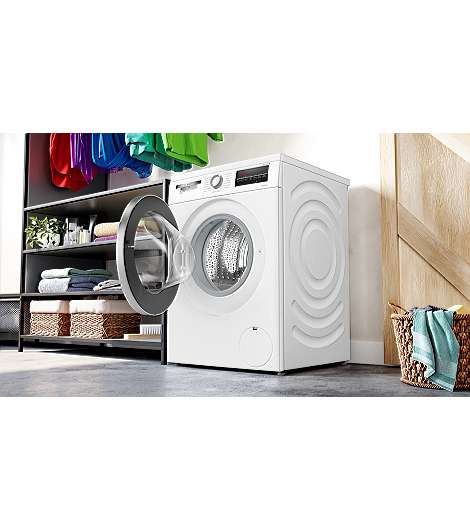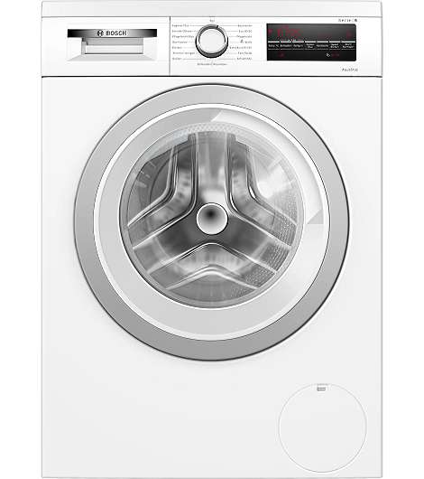 Bosch Serie 6 WUU28T70. Ladetyp: Frontlader. Nennkapazität: 8 kg, Schleuder-Klasse: B, Luftschallemission (Schleudern): 69 dB, Luftschallemmission (Waschen): 48 dB, Maximale Schleuderdrehzahl: 1400 RPM. Produktfarbe: Weiß. Breite: 598 mm, Tiefe: 590 mm, Höhe: 845 mm. Energieeffizienzklasse: B