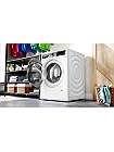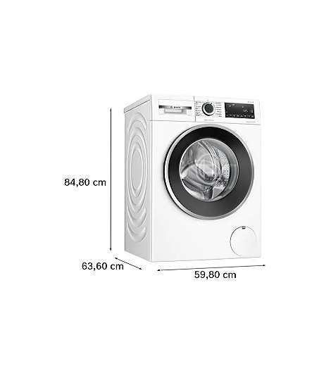 Bosch Serie 6 WGG244120. Ladetyp: Frontlader. Nennkapazität: 9 kg, Schleuder-Klasse: B, Luftschallemission (Schleudern): 70 dB, Maximale Schleuderdrehzahl: 1351 RPM. Produktfarbe: Weiß. Breite: 598 mm, Tiefe: 590 mm, Höhe: 848 mm. Energieeffizienzklasse: A