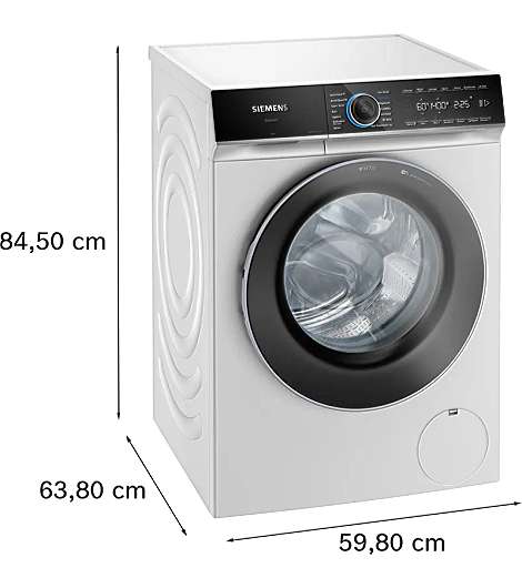 Siemens iQ700 WG44B2AW0. Ladetyp: Frontlader. Nennkapazität: 9 kg, Schleuder-Klasse: B, Luftschallemission (Schleudern): 71 dB, Maximale Schleuderdrehzahl: 1400 RPM. Produktfarbe: Weiß. Breite: 598 mm, Tiefe: 590 mm, Höhe: 845 mm. Energieeffizienzklasse: A