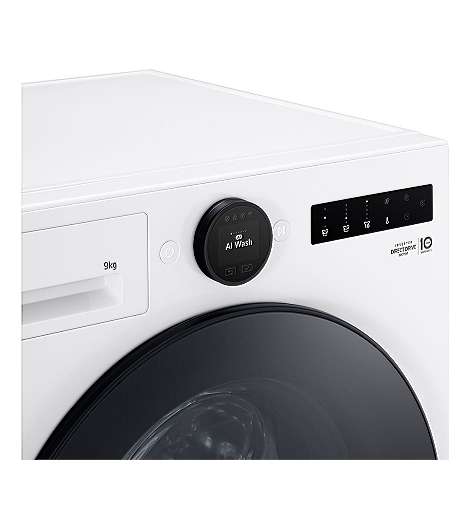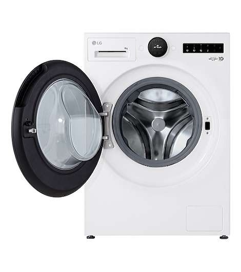 LG F4WX809YC. Ladetyp: Frontlader. Nennkapazität: 9 kg, Schleuder-Klasse: B, Luftschallemission (Schleudern): 72 dB, Maximale Schleuderdrehzahl: 1350 RPM. Produktfarbe: Weiß. Breite: 600 mm, Tiefe: 620 mm, Höhe: 850 mm. Energieeffizienzklasse: A