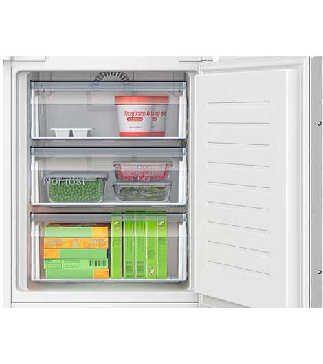 Bosch Serie 2 KIN96NSE0. Nutzinhalt Gesamteinheit: 290 l. Türscharnier: Rechts, Display-Typ: LED. Klimaklasse: SN-ST, Geräuschpegel: 34 dB. Nutzinhalt Kühlschrank: 215 l, NoFrost-Funktion (Kühleinheit), Innenbeleuchtung Kühleinheit, Kühlschrank - Anzahl der Ablagen/Körbe: 5. Nutzinhalt Gefrierfach: 75 l, Gefrierkapazität: 7,5 kg/24h, NoFrost-Funktion (Gefriereinheit). Energieeffizienzklasse: E, Jährlicher Energieverbrauch: 231 kWh. Produktfarbe: Weiß