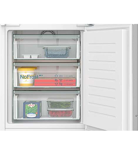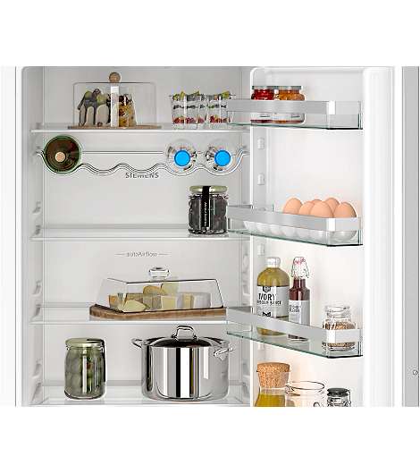 Siemens iQ300 KI96NVFD0. Nutzinhalt Gesamteinheit: 290 l. Türscharnier: Rechts. Klimaklasse: SN-ST, Geräuschpegel: 34 dB. Nutzinhalt Kühlschrank: 215 l, NoFrost-Funktion (Kühleinheit), Innenbeleuchtung Kühleinheit, Kühlschrank - Anzahl der Ablagen/Körbe: 3. Nutzinhalt Gefrierfach: 75 l, Gefrierkapazität: 8 kg/24h, NoFrost-Funktion (Gefriereinheit). Fresh Zone Fach. Energieeffizienzklasse: D, Jährlicher Energieverbrauch: 184 kWh. Produktfarbe: Weiß