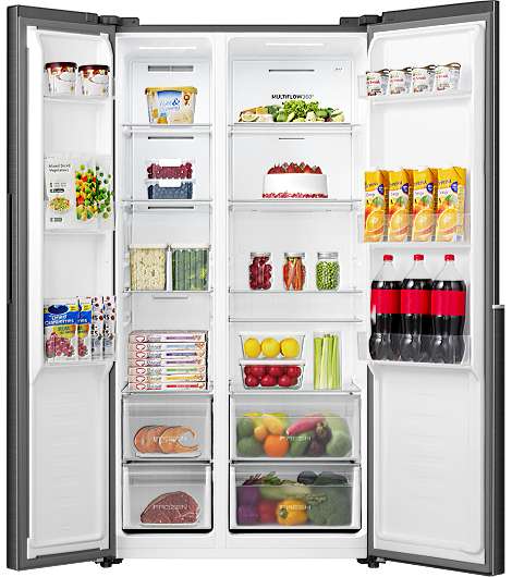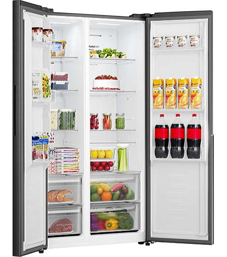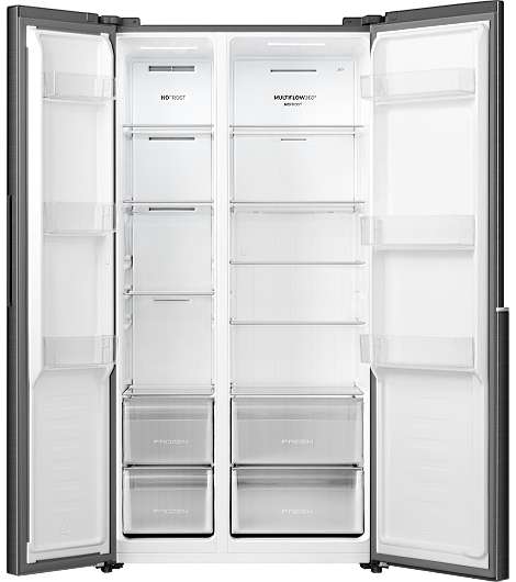 Gorenje Side by Side NRS917E41BX ČR. Geräteplatzierung: Freistehend, Produktdesign: Amerikanische Tür, Produktfarbe: Schwarz. Nutzinhalt Gesamteinheit: 544 l, Klimaklasse: SN-T, Lärmemissionsklasse: C. Nutzinhalt Kühlschrank: 347 l, Lampentyp: LED. Nutzinhalt Gefrierfach: 197 l, Gefrierfachposition: Seitlich platziert, Gefrierkapazität: 10 kg/24h. Energieeffizienzklasse: E, Jährlicher Energieverbrauch: 317 kWh, Energieeffizienzskala: A bis G