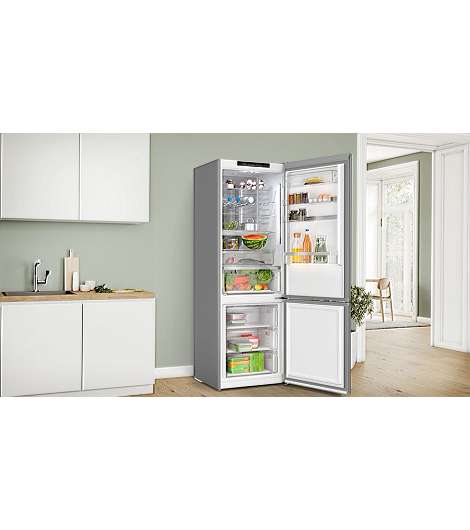 Bosch Serie 6 KGN49LBCF. Nutzinhalt Gesamteinheit: 440 l. Türscharnier: Rechts, Display-Typ: LED. Klimaklasse: SN-T, Geräuschpegel: 35 dB. Nutzinhalt Kühlschrank: 311 l, NoFrost-Funktion (Kühleinheit), Multi Airflow System (Kühlschrank), Kühlschrank - Anzahl der Ablagen/Körbe: 5. Nutzinhalt Gefrierfach: 129 l, Gefrierkapazität: 11 kg/24h, NoFrost-Funktion (Gefriereinheit). Energieeffizienzklasse: C, Jährlicher Energieverbrauch: 178 kWh. Produktfarbe: Schwarz