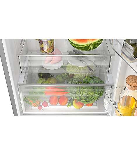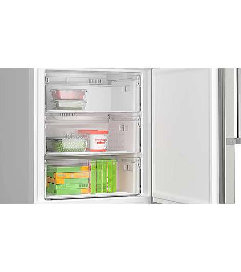 Bosch KGN49VICT. Nutzinhalt Gesamteinheit: 440 l. Türscharnier: Rechts. Klimaklasse: SN-T, Geräuschpegel: 35 dB. Nutzinhalt Kühlschrank: 311 l, NoFrost-Funktion (Kühleinheit), Multi Airflow System (Kühlschrank), Innenbeleuchtung Kühleinheit. Nutzinhalt Gefrierfach: 129 l, Gefrierkapazität: 11 kg/24h, NoFrost-Funktion (Gefriereinheit). Fresh Zone Fach. Energieeffizienzklasse: C, Jährlicher Energieverbrauch: 178 kWh. Produktfarbe: Edelstahl