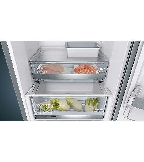 Siemens iQ500 KG39E8XBA. Nutzinhalt Gesamteinheit: 343 l. Türscharnier: Rechts. Klimaklasse: SN-T, Geräuschpegel: 38 dB. Nutzinhalt Kühlschrank: 249 l, Innenbeleuchtung Kühleinheit, Kühlschrank - Anzahl der Ablagen/Körbe: 5. Nutzinhalt Gefrierfach: 94 l, Gefrierkapazität: 14 kg/24h. Fresh Zone Fach. Energieeffizienzklasse: B, Jährlicher Energieverbrauch: 119 kWh. Produktfarbe: Schwarz, Edelstahl