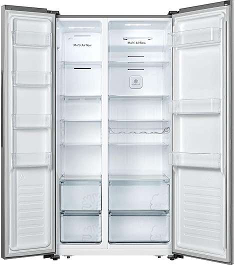 Hisense Side by Side RS677N4BIE VZ067. Geräteplatzierung: Freistehend, Produktdesign: Amerikanische Tür, Produktfarbe: Grau. Nutzinhalt Gesamteinheit: 519 l, Klimaklasse: SN-ST, Lärmemissionsklasse: C. Nutzinhalt Kühlschrank: 334 l, Lampentyp: LED. Nutzinhalt Gefrierfach: 185 l, Gefrierfachposition: Seitlich platziert, Gefrierkapazität: 11 kg/24h. Energieeffizienzklasse: E, Jährlicher Energieverbrauch: 309 kWh, Energieeffizienzskala: A bis G