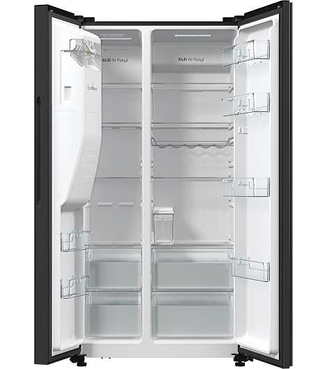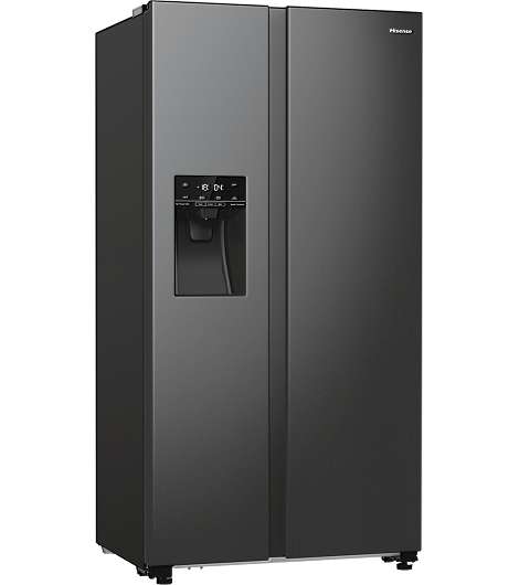 Hisense Side by Side RS5P535NTFE H247B. Geräteplatzierung: Freistehend, Produktdesign: Amerikanische Tür, Produktfarbe: Schwarz. Nutzinhalt Gesamteinheit: 566 l, Klimaklasse: SN-T, Lärmemissionsklasse: C. Nutzinhalt Kühlschrank: 376 l, Lampentyp: LED. Nutzinhalt Gefrierfach: 190 l, Gefrierfachposition: Seitlich platziert, Gefrierkapazität: 12 kg/24h. Energieeffizienzklasse: E, Jährlicher Energieverbrauch: 324 kWh, Energieeffizienzskala: A bis G