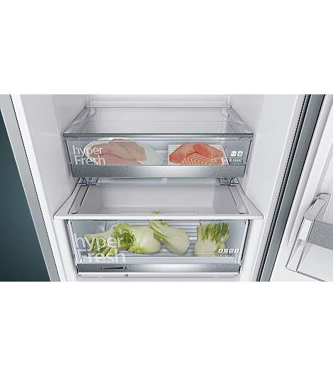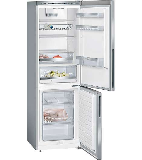 Siemens iQ500 KG36EALCA. Nutzinhalt Gesamteinheit: 308 l. Türscharnier: Rechts. Klimaklasse: SN-T, Geräuschpegel: 38 dB. Nutzinhalt Kühlschrank: 214 l, Innenbeleuchtung Kühleinheit, Kühlschrank - Anzahl der Ablagen/Körbe: 4, Anzahl der Gemüseschubladen: 1. Nutzinhalt Gefrierfach: 94 l, Gefrierkapazität: 14 kg/24h. Fresh Zone Fach. Energieeffizienzklasse: C, Jährlicher Energieverbrauch: 149 kWh. Produktfarbe: Edelstahl