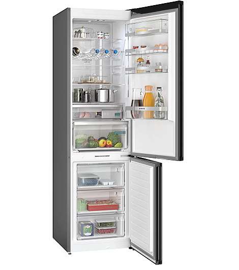 Siemens iQ500 KG39NAXCF. Nutzinhalt Gesamteinheit: 363 l. Türscharnier: Rechts. Klimaklasse: SN-T, Geräuschpegel: 35 dB. Nutzinhalt Kühlschrank: 260 l, Multi Airflow System (Kühlschrank), Innenbeleuchtung Kühleinheit, Kühlschrank - Anzahl der Ablagen/Körbe: 5, Anzahl der Gemüseschubladen: 1. Nutzinhalt Gefrierfach: 103 l, Gefrierkapazität: 10 kg/24h. Fresh Zone Fach. Energieeffizienzklasse: C, Jährlicher Energieverbrauch: 162 kWh. Produktfarbe: Edelstahl