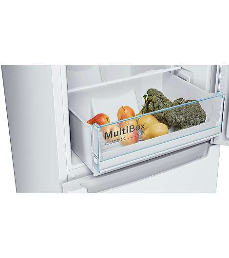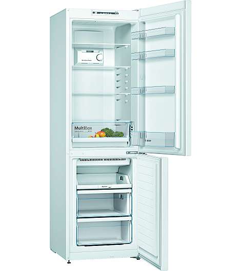 Bosch Serie 2 KGN36NWEA. Nutzinhalt Gesamteinheit: 305 l. Türscharnier: Rechts. Klimaklasse: SN-T, Geräuschpegel: 42 dB. Nutzinhalt Kühlschrank: 216 l, NoFrost-Funktion (Kühleinheit), Innenbeleuchtung Kühleinheit, Kühlschrank - Anzahl der Ablagen/Körbe: 4. Nutzinhalt Gefrierfach: 89 l, Gefrierkapazität: 11 kg/24h, NoFrost-Funktion (Gefriereinheit). Fresh Zone Fach. Energieeffizienzklasse: E, Jährlicher Energieverbrauch: 239 kWh. Produktfarbe: Weiß