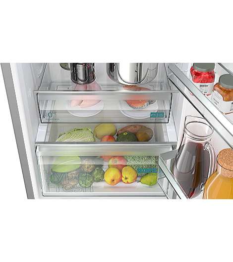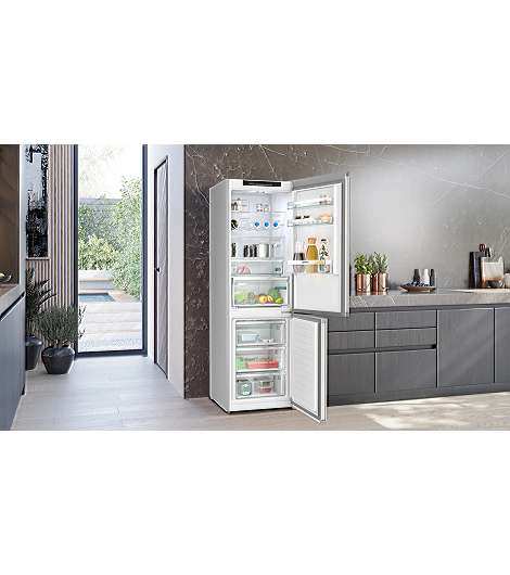 Siemens iQ300 KG36N2IBF. Nutzinhalt Gesamteinheit: 321 l. Türscharnier: Rechts. Klimaklasse: SN-T, Geräuschpegel: 33 dB. Nutzinhalt Kühlschrank: 218 l, NoFrost-Funktion (Kühleinheit), Innenbeleuchtung Kühleinheit, Kühlschrank - Anzahl der Ablagen/Körbe: 4. Nutzinhalt Gefrierfach: 103 l, Gefrierkapazität: 9,5 kg/24h, NoFrost-Funktion (Gefriereinheit). Fresh Zone Fach. Energieeffizienzklasse: B, Jährlicher Energieverbrauch: 127 kWh. Produktfarbe: Edelstahl
