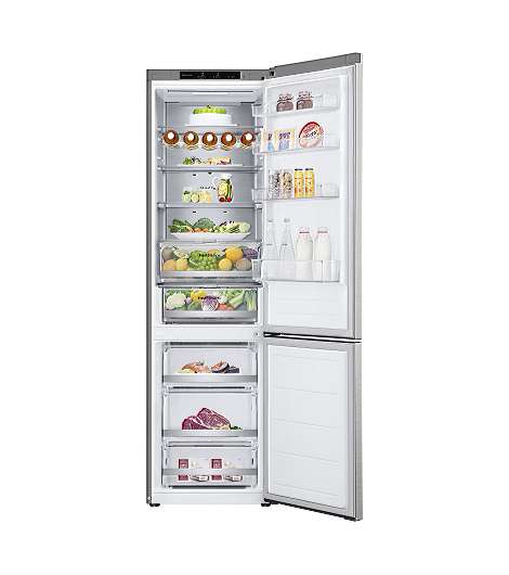 LG GBV7280AMB. Nutzinhalt Gesamteinheit: 387 l, Klimaklasse: T, Geräuschpegel: 33 dB. Nutzinhalt Kühlschrank: 277 l, NoFrost-Funktion (Kühleinheit), Multi Airflow System (Kühlschrank), Innenbeleuchtung Kühleinheit, Kühlschrank - Anzahl der Ablagen/Körbe: 4. Nutzinhalt Gefrierfach: 110 l, Gefrierkapazität: 12 kg/24h, NoFrost-Funktion (Gefriereinheit). Fresh Zone Fach. Energieeffizienzklasse: A, Jährlicher Energieverbrauch: 111 kWh. Produktfarbe: Silber