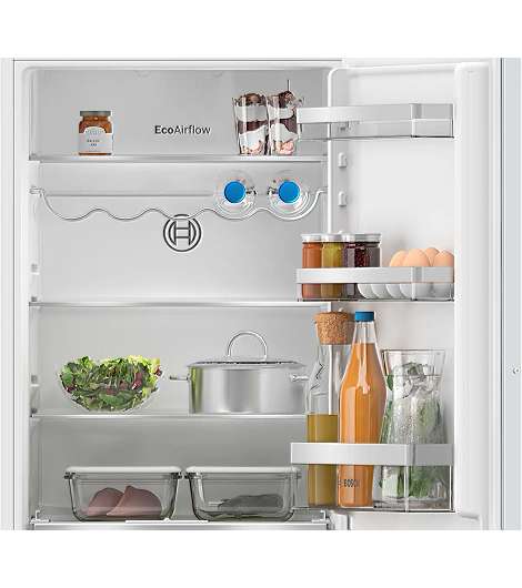 Bosch Serie 4 KIV86VFE1. Nutzinhalt Gesamteinheit: 267 l. Türscharnier: Rechts. Klimaklasse: SN-ST, Geräuschpegel: 35 dB. Nutzinhalt Kühlschrank: 183 l, Innenbeleuchtung Kühleinheit, Kühlschrank - Anzahl der Ablagen/Körbe: 4, Anzahl der Gemüseschubladen: 1. Nutzinhalt Gefrierfach: 84 l, Gefrierkapazität: 4,2 kg/24h. Energieeffizienzklasse: E, Jährlicher Energieverbrauch: 229 kWh. Produktfarbe: Weiß