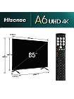 Hisense UHD Smart TV 85E6NT ČR. Bildschirmdiagonale: 2,16 m (85"), Display-Auflösung: 3840 x 2160 Pixel, HD-Typ: 4K Ultra HD, Bildschirmtechnologie: LED, Bildschirmform: Flach. Smart-TV. Helligkeit: 400 cd/m², Kontrastverhältnis: 6000:1, Natives Seitenverhältnis: 16:9. Digitales Signalformatsystem: DVB-C, DVB-S, DVB-S2, DVB-T, DVB-T2. WLAN, Ethernet/LAN. Produktfarbe: Schwarz