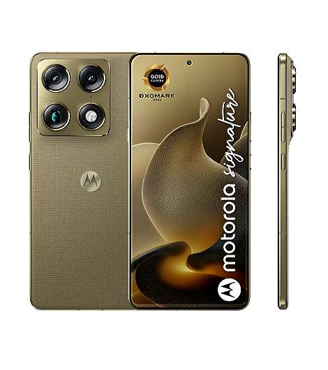 Motorola signature . Bildschirmdiagonale: 17,2 cm (6.78"), Display-Auflösung: 2780 x 1264 Pixel. Prozessor-Taktfrequenz: 3,8 GHz, Prozessorfamilie: Snapdragon, Prozessor: 8 Gen 5. RAM-Kapazität: 16 GB, RAM-Typ: LPDDR5X, Interne Speicherkapazität: 512 GB. Auflösung Rückkamera (numerisch): 50 MP, Rückkamera-Typ: Dreifach-Kamera. SIM-Kartensteckplätze: Dual-SIM. Installiertes Betriebssystem: Android 16.0. Akku-/Batteriekapazität: 5200 mAh. Produktfarbe: Gold. Gewicht: 186 g