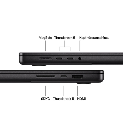 Das neue MacBook Pro hat die längste Batterielaufzeit, die es je bei einem Mac gab – bis zu 24 Stunden. Und mit Schnellladen lädt es in nur 30 Minuten auf bis zu 50 Prozent. Alle Modelle liefern die gleiche Performance, ob sie am Strom angeschlossen sind oder nicht. So kannst du dich voll und ganz auf deine Projekte konzentrieren und nicht auf die Suche nach der nächsten Steckdose.